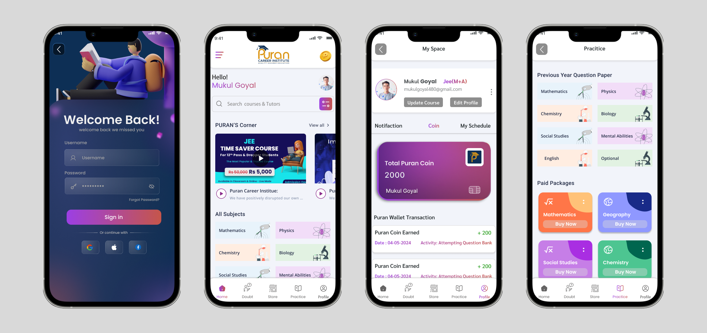 We followed a student-centric, performance-driven development approach. Our process began with detailed research on competitive exam patterns, student learning behaviors, and the unique requirements of Puran Career Institute.